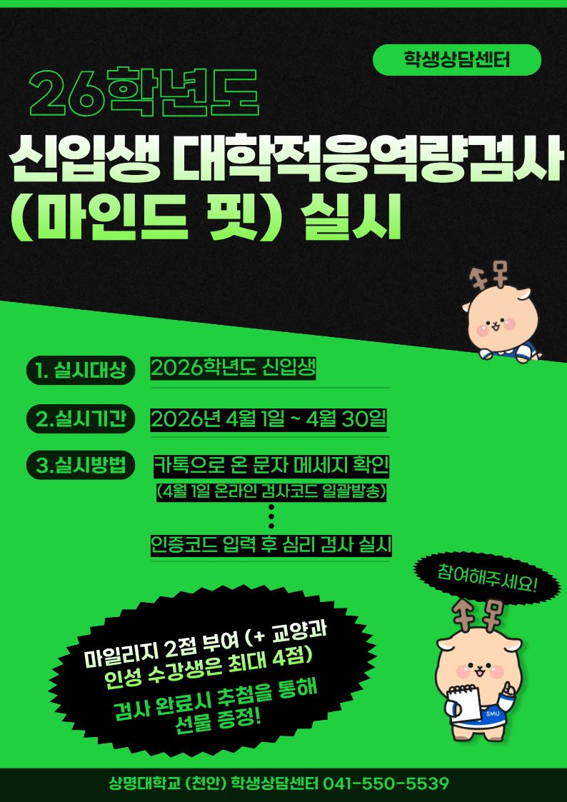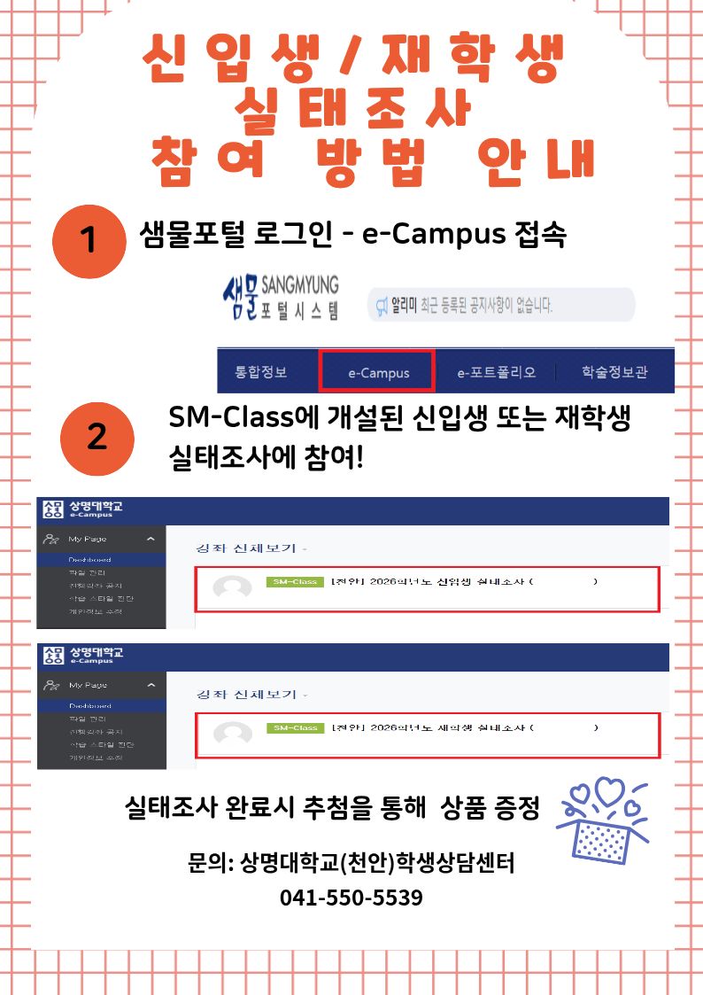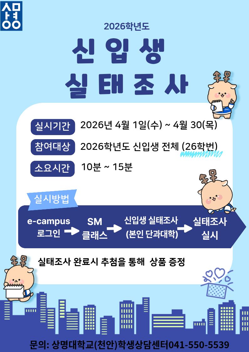 2026학년도 신입생 / 재학생 실태조사 및 신입생 적응역량검사 안내